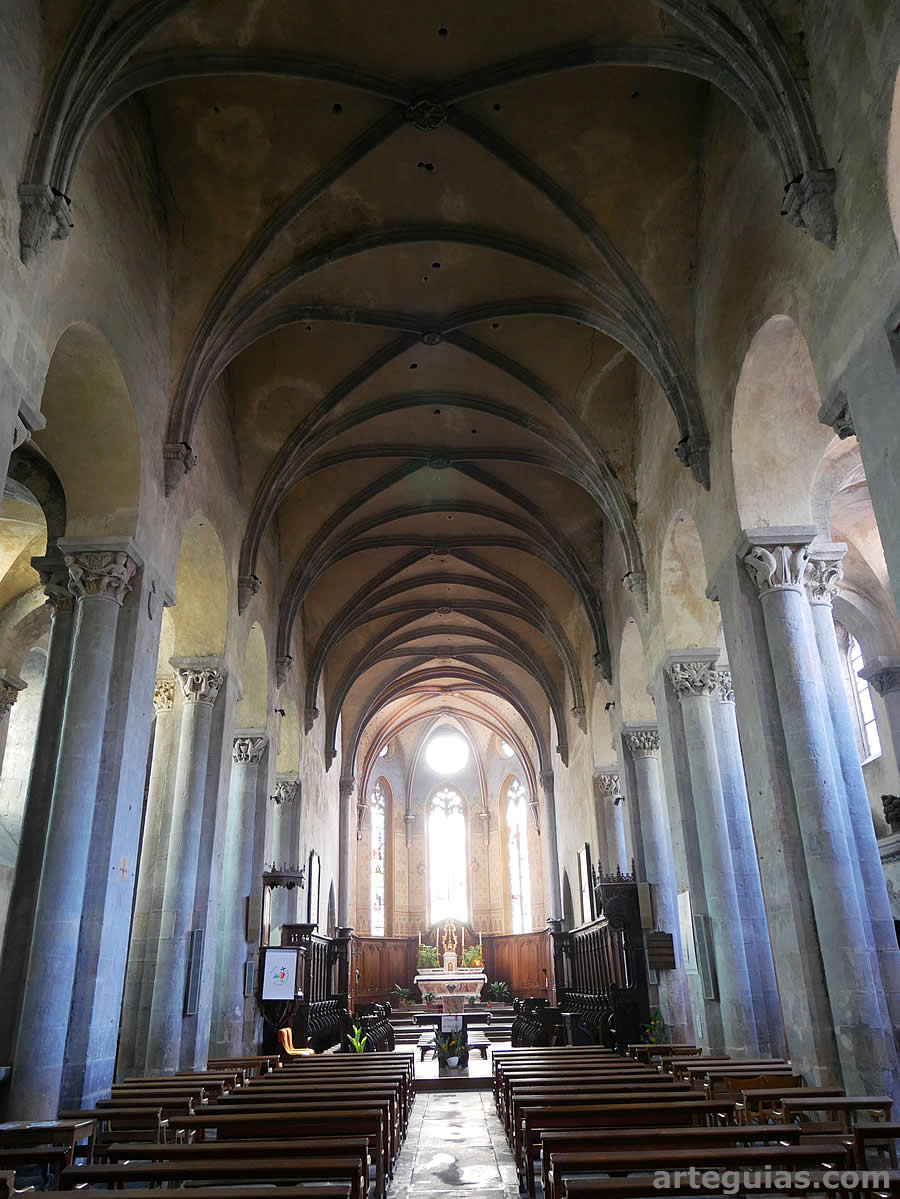 Encima de estos pilares, en 1741 se añadieron ménsulas que recogen los nervios de las bóvedas de crucería de la nave central. La nave lateral norte se cubre con bóvedas de arista de época románica.