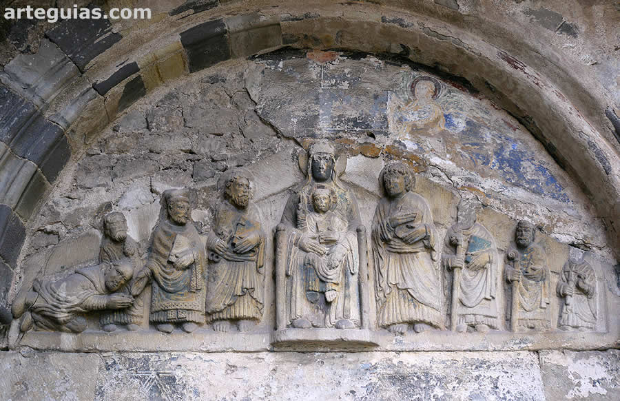 Aunque la cabecera es gótica del siglo XV, sabemos que la primitiva románica tenía girola y capillas radiales. La comunicación entre la girola y la capilla mayor se hacía mediante ocho columnas encapiteladas. A lo largo del tiempo se han ido hallando hasta cinco de aquellos capiteles románicos. Cuatro se conserva en el templo mientras que el quinto se encuentra en las colecciones del Victoria and Albert Museum de Londres.