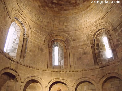 El armonioso ábside es lo mejor. Cuenta con columnas encaramadas a plintos, ventanales de arquivoltas aboceladas y una pareja de chambranas ajedrezadas que anillan elegantemente las columnas.