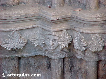 - gótica y capiteles de hojas de parra con mascarones.