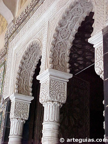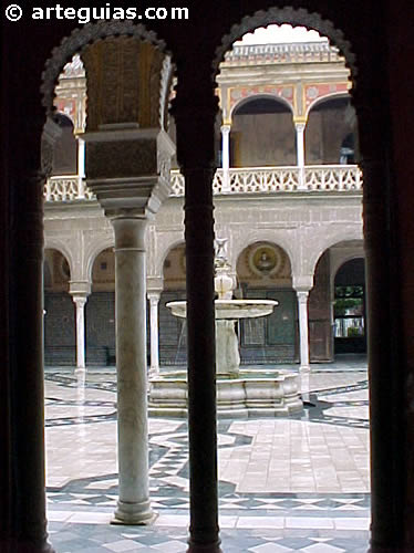 Si la arquitectura y escultura monumental de la Casa de Pilatos de Sevilla es básicamente clásica, la decoración mural de frisos, intradós de arcos, etc. se engalana con una preciosista decoración geométrica y vegetal de tipo mudéjar.