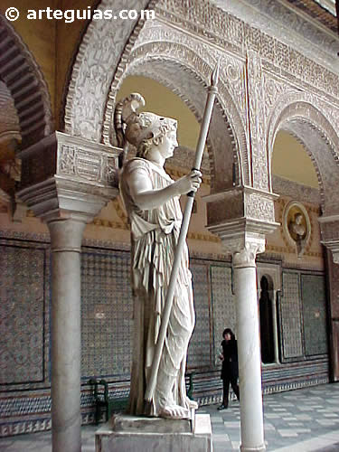 La Casa de Pilatos, es un magnífico palacio renacentista con decoración mudéjar. En la imagen, el patio porticado de dos pisos con estatuas de tipo clásico.