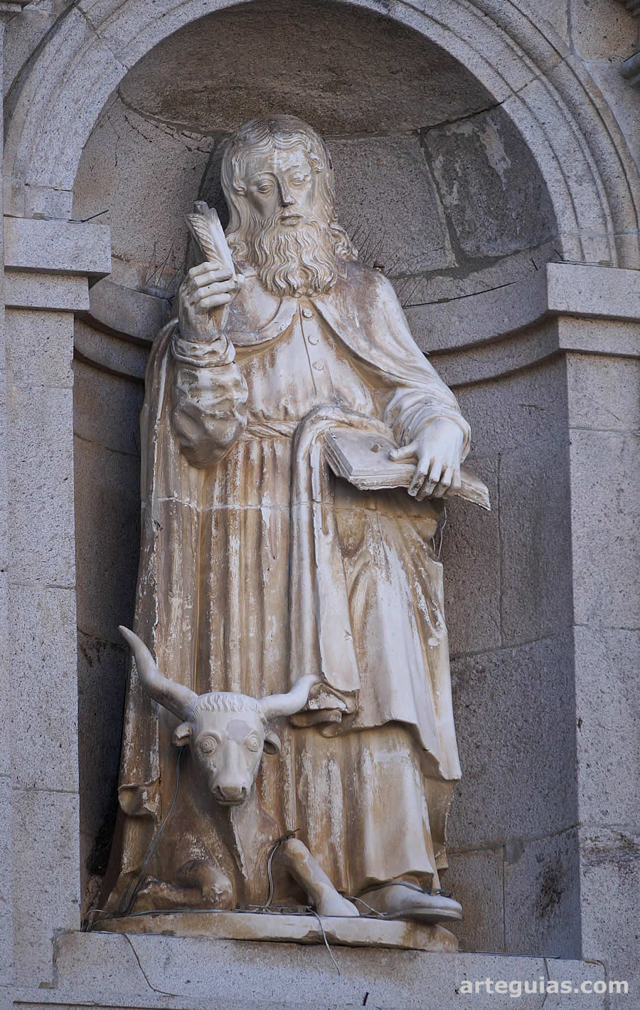 Perfilan los bordes dos inscripciones del Evangelio de San Lucas. Concretamente: