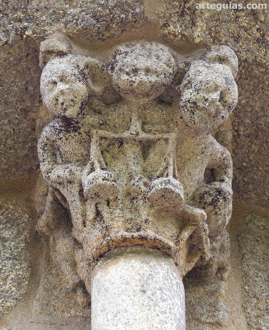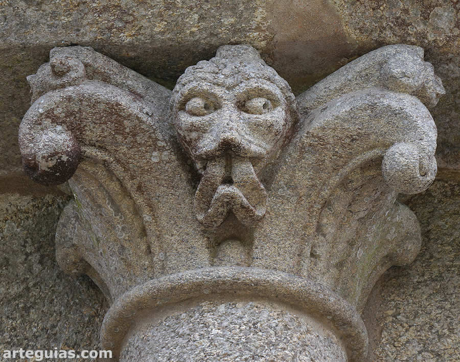 Los capiteles y canecillos de esta cabecera inciden en temas figurados diversos como por ejemplo: una posible Psicostasis, un águila atrapando una serpiente, un hombre y un jabalí, un dragón, una serpiente, un león, un contorsionista, etc.