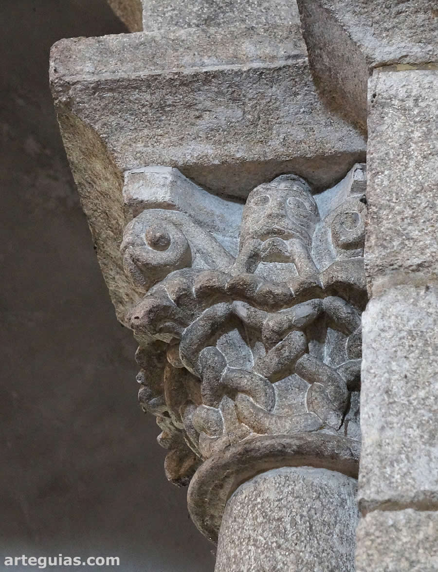 La arquería románica conservada también se encuentra alterada por contrafuertes construidos en el patio. Sus arcos son muy anchos y de gran barroquismo por sus arquivoltas repletas de motivos florales (hojas y florones carnosos) y geométricos. Fue obra del taller del Maestro Mateo (o de colaboradores directos) a finales del siglo XII o comienzo del XIII.