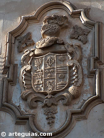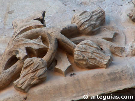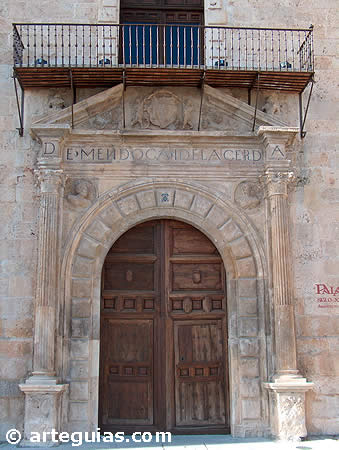en los ángulos y su portada plateresca, flanqueada con columnas