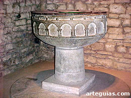 bautismal, probablemente la original medieval del templo. Despliega
