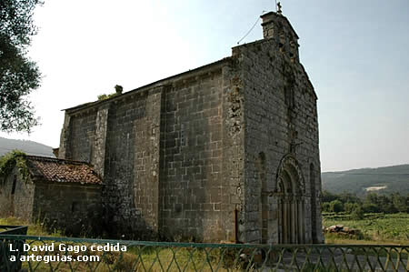 Sus orígenes se remontan a los primeros años de la cristiandad. Fue destruida por Almanzor en el 997 y reconstruida en el siglo XII por el arzobispo Gelmírez. De esta época se conserva la portada románica con la representación de la Adoración de los Magos. La portada está formada por tres arquivoltas peraltadas que parten de tres columnas a ambos lados de la puerta. Ésta se encuentra flanqueada por dos altos arcos ciegos semicirculares.