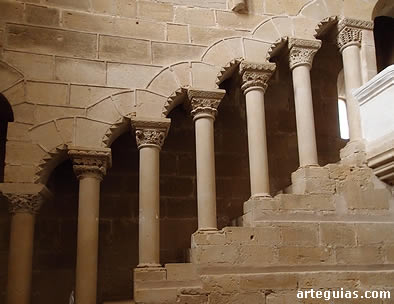 Junto a esta puerta está el púlpito, embutido en el muro, con una escalera que se comunica con la sala mediante una arcada con capiteles decorados con formas vegetales, y que desemboca en el ambón.