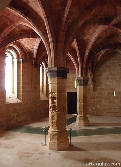cubiertos con bóvedas de crucería. Los pilares centrales