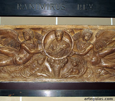Lo más destacable es el sepulcro de Ramiro II que es un sepulcro romano marmóreo del siglo II d.C. con el busto de un personaje togado dentro de un clípeo que es elevado por dos genios alados, que a su vez se hallan flanqueados por Neptuno, Anfítrite, Hypnos y Thánatos.