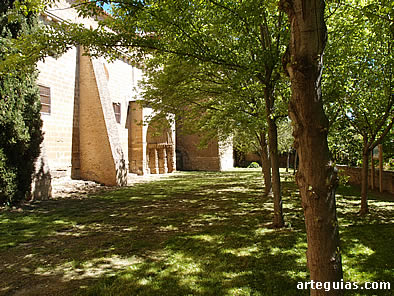La iglesia es la parte más antigua de todo el conjunto, aunque durante el siglo XVII sufrió profundas transformaciones. Desde el exterior se ve a simple vista la ampliación de la nave y el transepto, cuya altura aumentó de forma considerable con una estructura de ladrillo, que sobresale por encima de la sillería original.