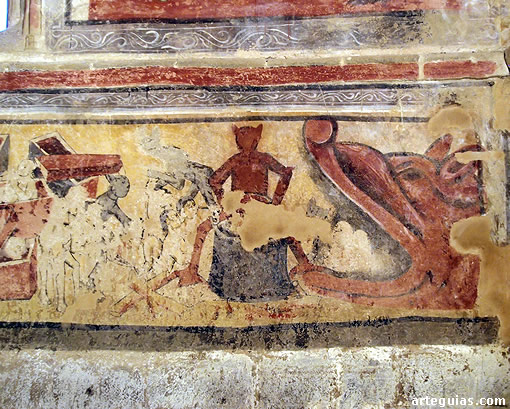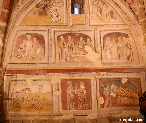 En el muro septentrional de la nave sur destaca la figura de una mujer, que debió formar parte de una escena más amplia. Pero el conjunto de mayor riqueza se encuentra en el ábside del lado de la epístola. En el lienzo sur se puede ver, en la parte superior, la Matanza de los Inocentes, y en la inferior, un Juicio Final. En la cabecera se aprecian diferentes representaciones. De arriba abajo, y de izquierda a derecha, se encuentra el Nacimiento, la adoración de los Magos, la adoración de los pastores, un funeral y dos escenas de caza. En la bóveda esta representado un Tetramorfos.