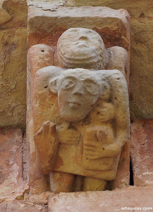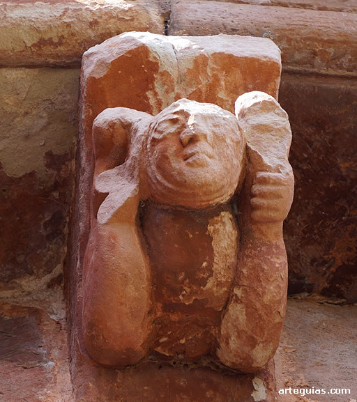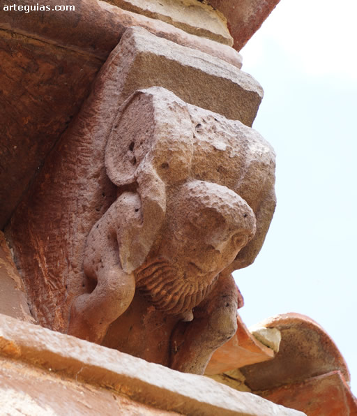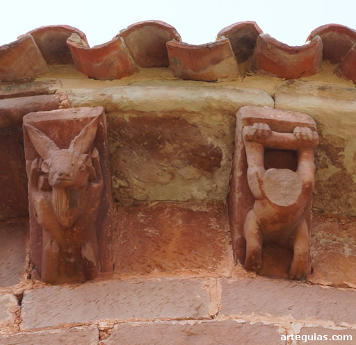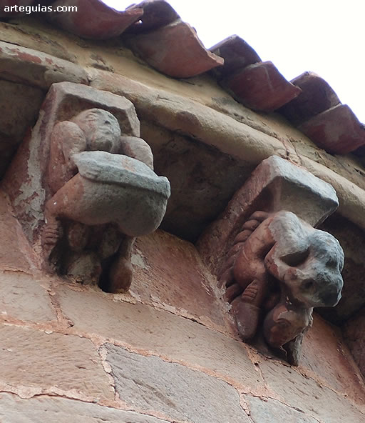 Pero sin duda, lo más interesante al exterior de la iglesia románica de Villanueva de la Nía es la magnífica colección de canecillos figurados que sostienen su cornisa, cinco a cada lado del tramo recto y hasta catorce en el tambor absidial.