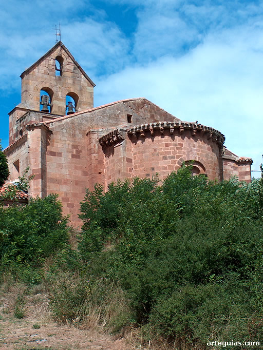 Así pues, los restos románicos de la iglesia de San Juan Bautista se circunscriben al tramo recto presbiterial y al hemiciclo absidial, de buena sillería y de un aspecto de lo más armónico al carecer de articulación vertical en forma de columnas entregas y contrafuertes.