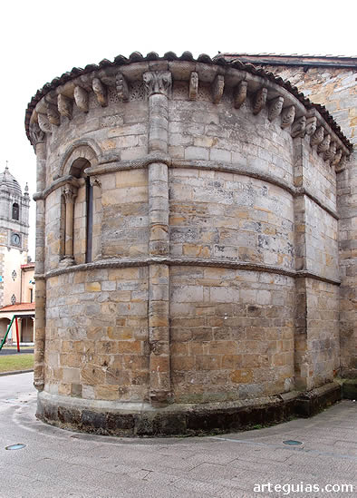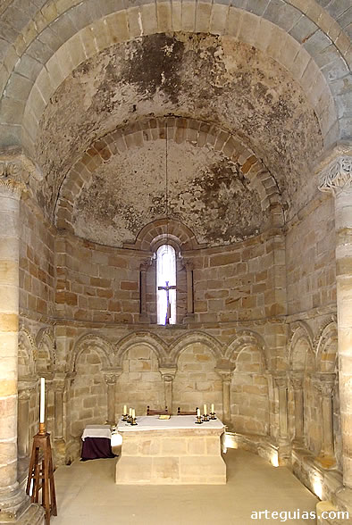 La belleza del ábside es acentuada gracias a una arquería ciega sobre columnas que recorre todo el hemiciclo y los muros presbiteriales en su faja inferior.