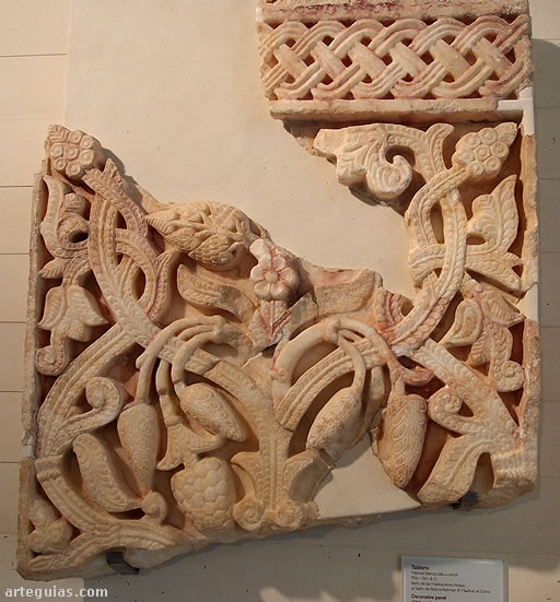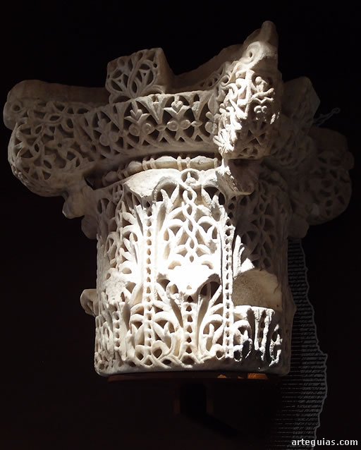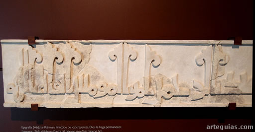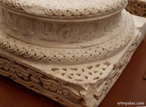 Interesante es una basa de mármol blanco esculpido a cincel y trépano entre los años 956 y 961 originaria de las habitaciones anejas al salón de Abd al-Rahman III, con decoración epigráfica con el siguiente texto: