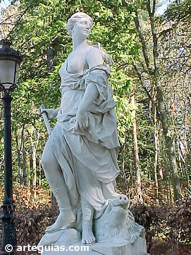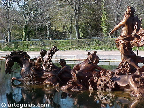| Fachada meridional del Palacio de la Granja | Fuente de Neptuno del Palacio de La Granja | Una de las estatuas que decoran los jardines de La Granja |