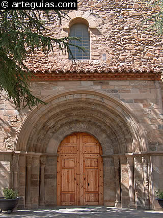 La puerta principal nos recuerda la estructura -aunque muy simplificada- de la del Monasterio de Veruela que seguramente influyó en todo el románico tardío que llegase a construirse en esta zona.