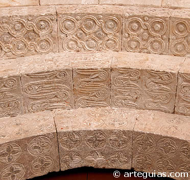 Consta también de cuatro arquivoltas apuntadas y decoradas