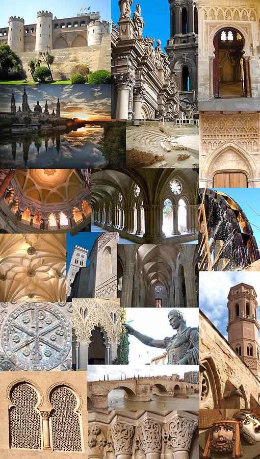 Fruto de esta dilatada historia, hay una serie de monumentos inexcusables que visitaremos como son -entre otros- el recuperado el Museo del Foro de Caesaraugusta, el Teatro Romano, la Catedral románica, gótica y mudéjar (la Seo), la Basílica de El Pilar, la Lonja, el exterior de la iglesia de la Magdalena y, por supuesto, el Palacio de la Aljafería, obra monumental que se encuentra entre lo mejor del legado artístico de Al-Andalus.