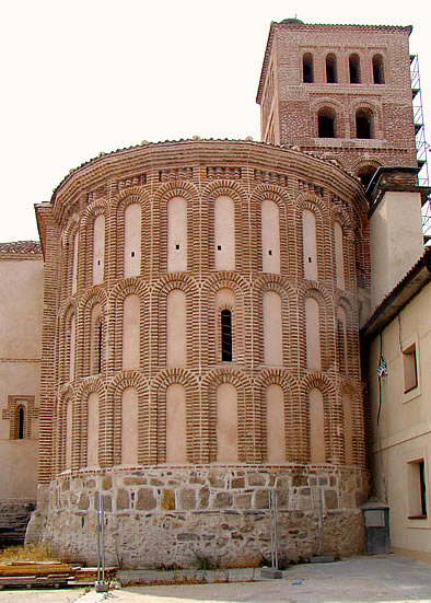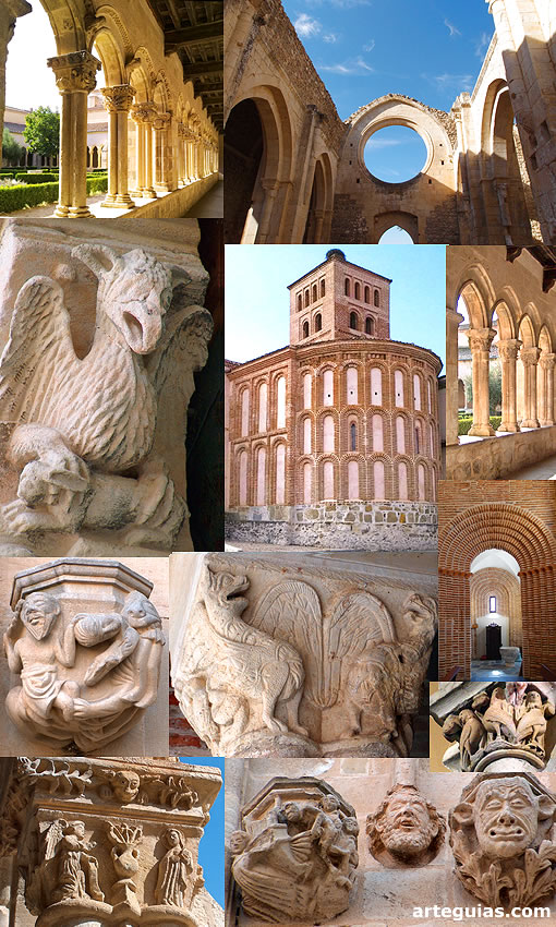 Y es que se trata de una construcción en la que conviven en perfecta armonía elementos de la más pura tradición románica como son los restos de su galería porticada con sus columnas y sus capiteles historiados, con fórmulas mudéjares mucho más propias de la comarca, como es el caso de sus ábsides y la torre campanario.