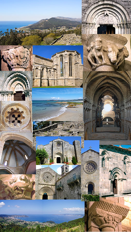 La ruta incluye la Catedral de Santa María y la iglesia de San Bartolomé de Rebordáns de Tuy, la Colegiata de Santa María de Bayona, los monasterios cistercienses de Armenteira y A Franqueira, el conjunto monumental de Pontevedra (Catedral de Santa María la Mayor, los conventos mendicantes de Santo Domingo, Santa Clara y San Francisco, etc.) las iglesias románicas de Castrelos (Vigo), San Martín de Sobrán, San Martín de Gargantáns, etc. También incluimos el castro prerromano de Santa Trega y de camino, el Monasterio orensano de San Clodio de Leiro, originario del Císter.