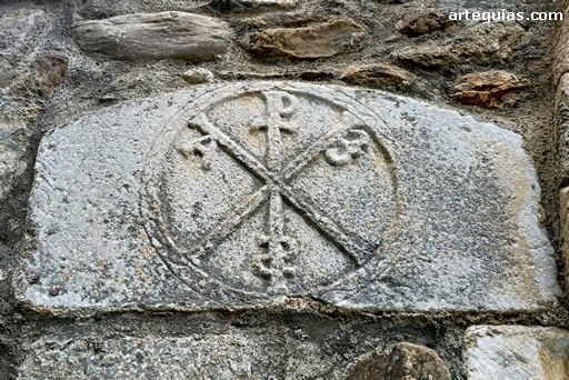 El acceso al templo se lleva a cabo por una puerta románica que da acceso al cementerio por el flanco norte. En una de las esquinas aparece incrustada una losa que formaría parte de un dintel o un tímpano de puerta con un crismón románico.