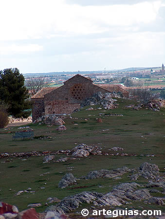| Ermita de Alarcos desde el castillo | Lado meridional de la Ermita de Alarcos | Ermita de Alarcos desde las instalaciones del Parque Arqueológico |