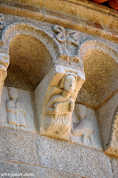 De imponente se puede calificar la cabecera, con la particularidad ya citada de disponer los absidiolos laterales más altos que el central. Además del equilibrio de formas generado por las líneas verticales y horizontales de columnas e impostas, hay que resaltar la colección escultórica de ménsulas y metopas.