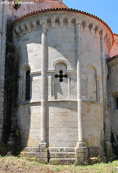 Las tres naves rematan en tres ábsides semicirculares, dándose la peculiaridad de que el central es más bajo que los laterales. Esto permitió a los constructores abrir un rosetón encima del ábside central, que ilumina el interior del templo y que, de no ser por él, resultaría demasiado oscuro. El profesor Castiñeiras opina que quizás este óculo se abrió en el momento en el que se sustituyeron las cubiertas de madera por las bóvedas de piedra.