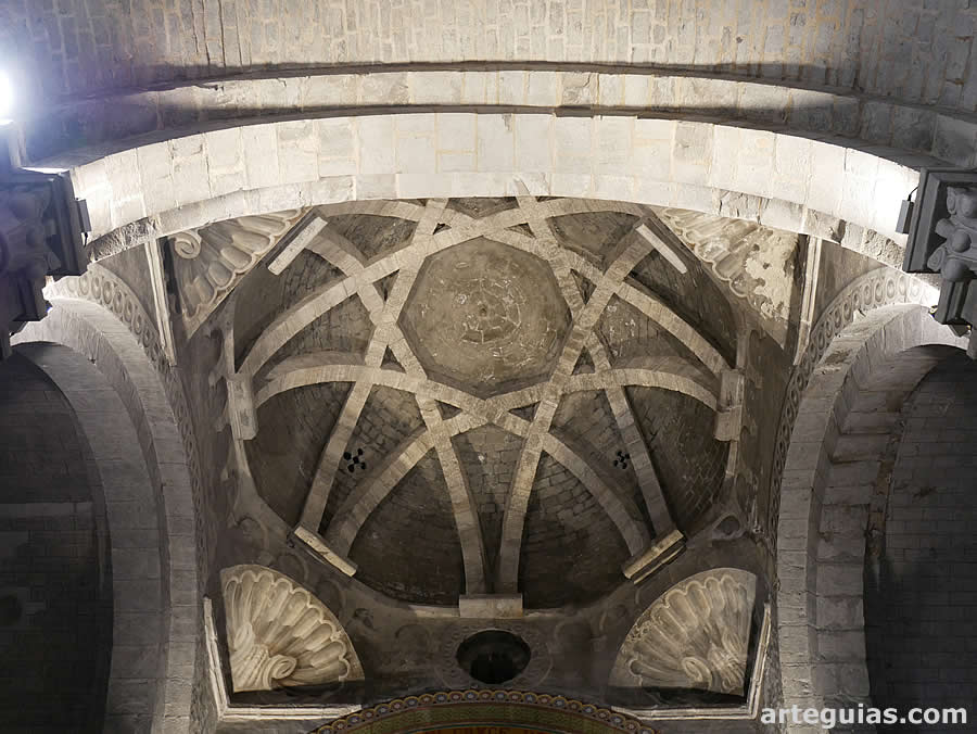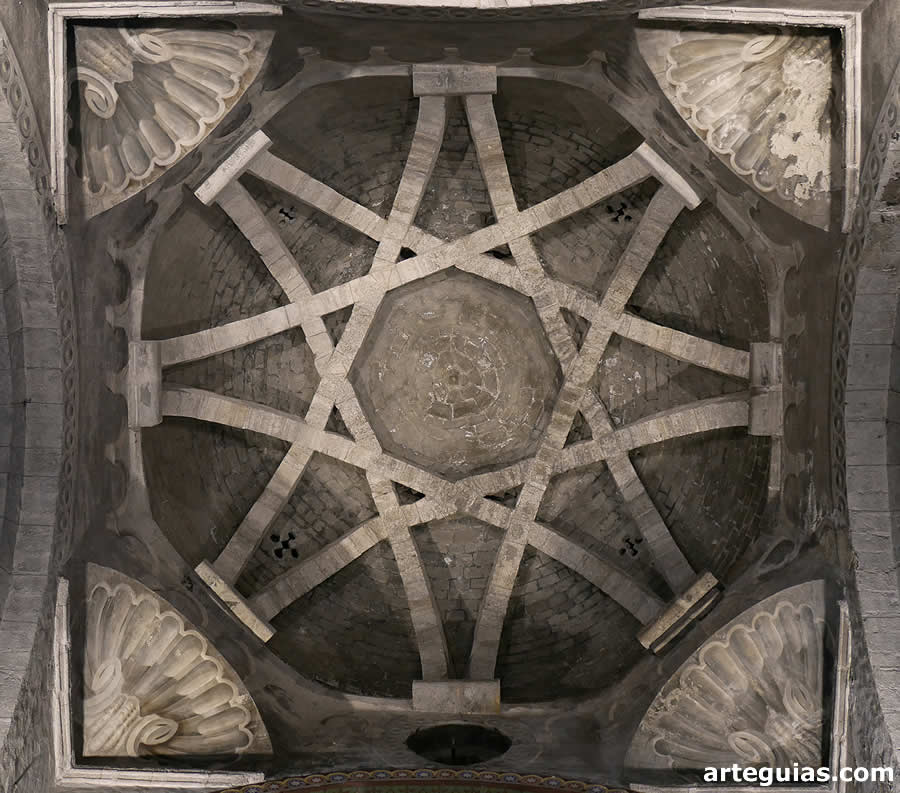 Sobre el crucero se yergue un cimborrio de geometría exterior cilíndrica del que nos ocuparemos más adelante.
