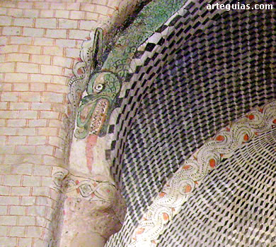 Lo más destacable es la gran serpiente de color verde de doble cabeza con bocas llameantes que recorre el arco triunfal. Esta pintura se ha datado en el siglo XV con una evidente estética arcaizante, especialmente el citado dragón o serpiente, que parece románico.